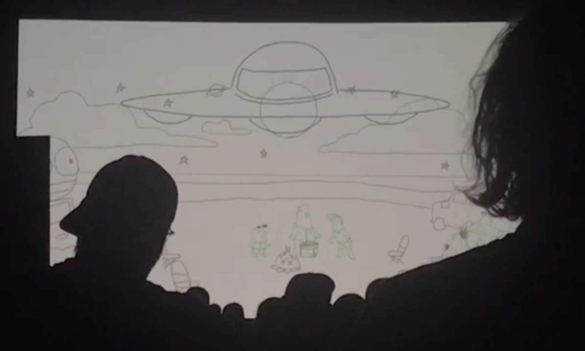 - The design for the UFO changed between the rough animation and the finalized product. The ship was originally much flatter, had a window on the side and three round-orbs on its underside. It's unknown why the design was altered.
