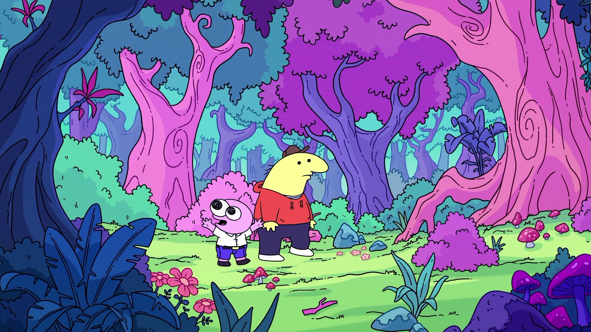 The Enchanted Forest is a recurring location in Smiling Friends. It is first mentioned in "Mr. Frog" before having an expanded role in the episode of the same name. Much like the name implies, it is an enchanted forest populated by all sorts of fantastical creatures including goblins, fairies, witches, forest folk, mermaids, and aliens (although Charlie detests the last one as it isn't fantasy).
