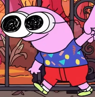He is a overly optimistic pink critter that works with Smiling Friends Inc.