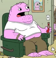Not much has been seen of Pim's father, but he seems to be quite grumpy and short tempered, angrily yelling and cursing at his wife after being asked to sit at the dinner table instead of in front of the TV, immediately sparking a fight. He is always shown clutching a brown beer bottle, even when taking his young son out for a walk, implying he may have a drinking problem. When Pim's father was younger, he appeared to be more friendly towards his son and family, as seen when he is walking a younger Pim past the Enchanted Forest. He also appeared more protective of his son back then as he declines Pim's request to venture into the Enchanted Forest due to how dangerous it was.